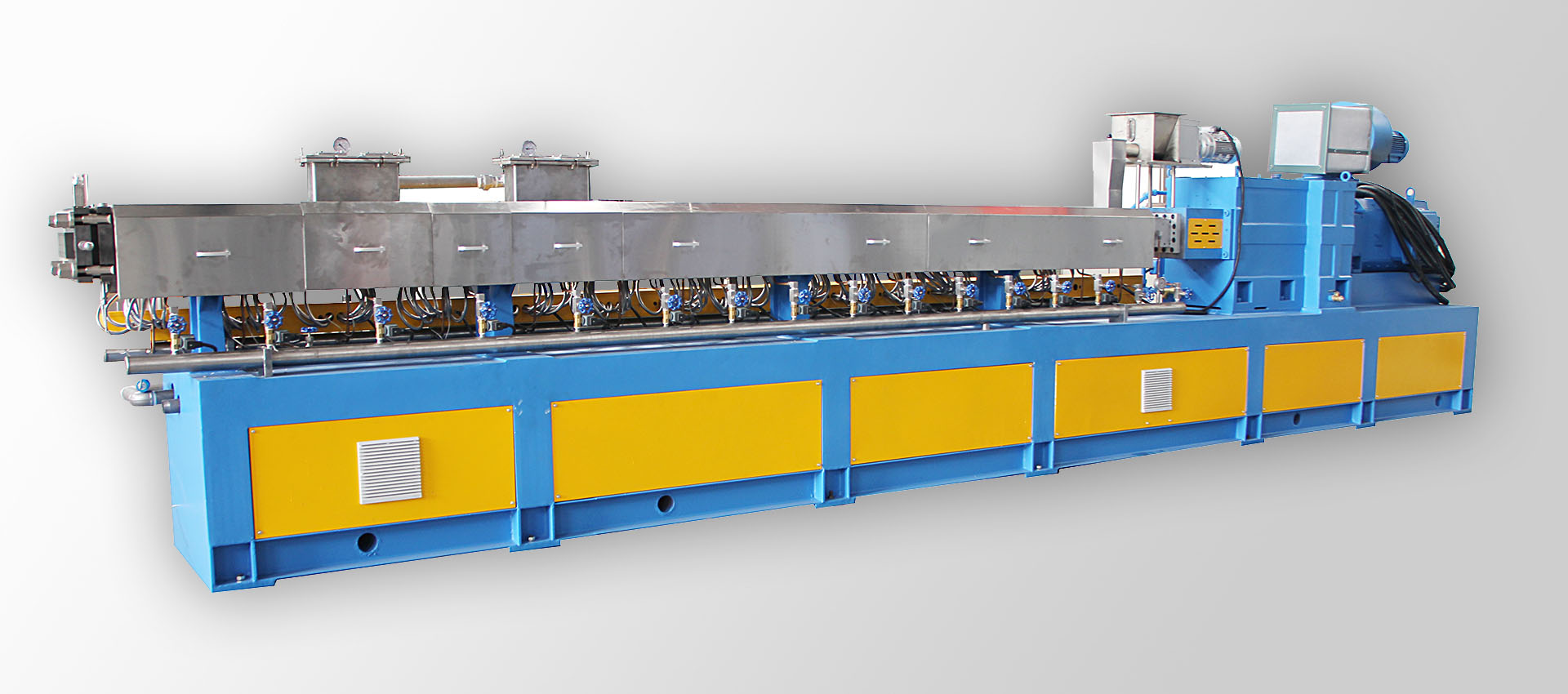 TPE,TPE這種改性塑料材料我們又把他叫作熱塑性彈性體材料。彈性體塑料擠出機(jī)和普通的塑料擠出機(jī)所用到的螺桿設(shè)計是不一樣的,因為我們常見的TPE材質(zhì)塑化性能要比普通PVC塑料材質(zhì)要差一些。所以我們常見的熱塑性彈性體擠出機(jī)從外觀看要比普通塑料擠出機(jī)要長一些。這是因為我們要加長塑料的塑化時間來保證產(chǎn)品的生產(chǎn)質(zhì)量。所以我們看到的熱塑性彈性體擠出機(jī)的長度要長一些。TPE塑料產(chǎn)品在生產(chǎn)的時候和其它塑料的生產(chǎn)工藝一樣,都是要先把原材料生產(chǎn)成我們所需要的顆粒后才可以再把顆粒加工成我們所需要的產(chǎn)品形狀。比如說彈性體密封條的生產(chǎn),熱塑性彈性體管的生產(chǎn)生產(chǎn)工藝都是這樣的。我們在選擇設(shè)備生產(chǎn)的時候一定要確定產(chǎn)品的材